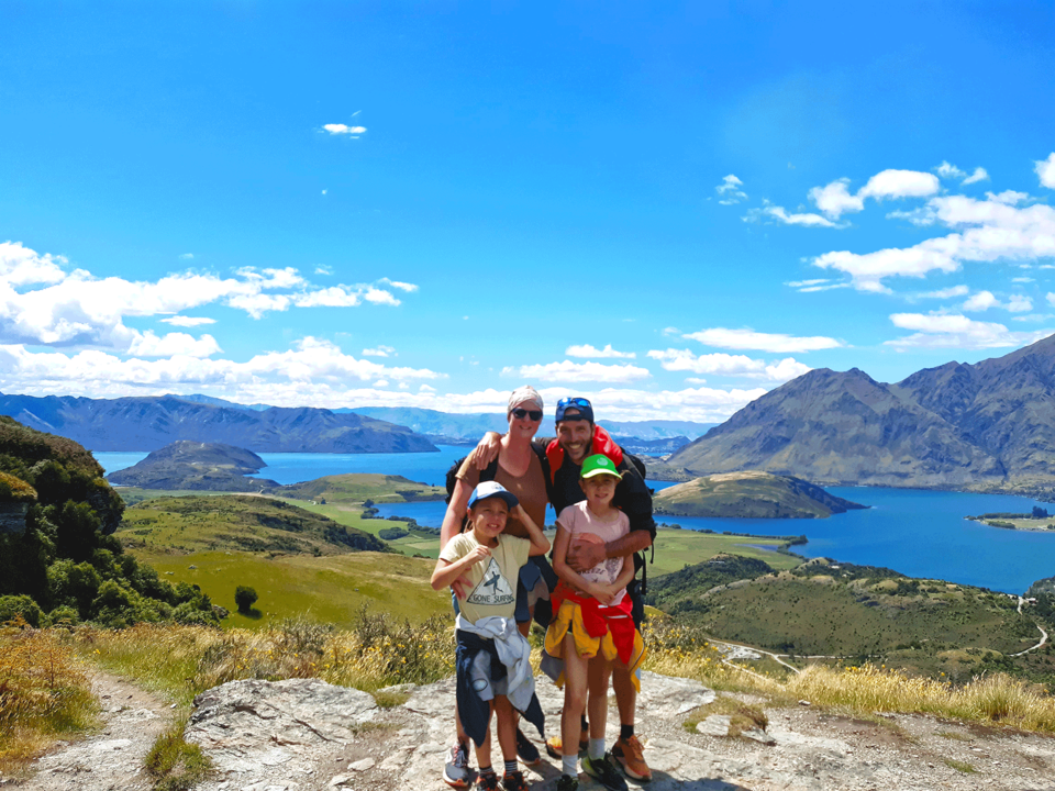 Pacôme, Magali, Maiwenn et Eliott au lac Wanaka